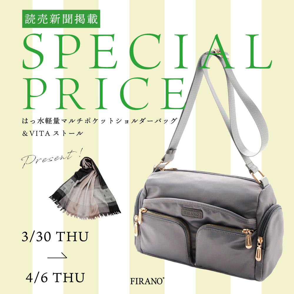 読売新聞掲載 ウォッシャブルマルチファンクションショルダーバッグ