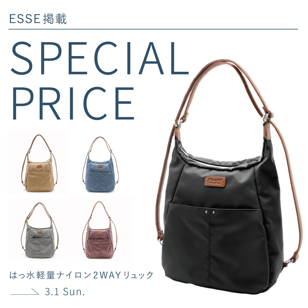 読売新聞掲載 はっ水軽量ナイロンフロントポケット2WAYリュック