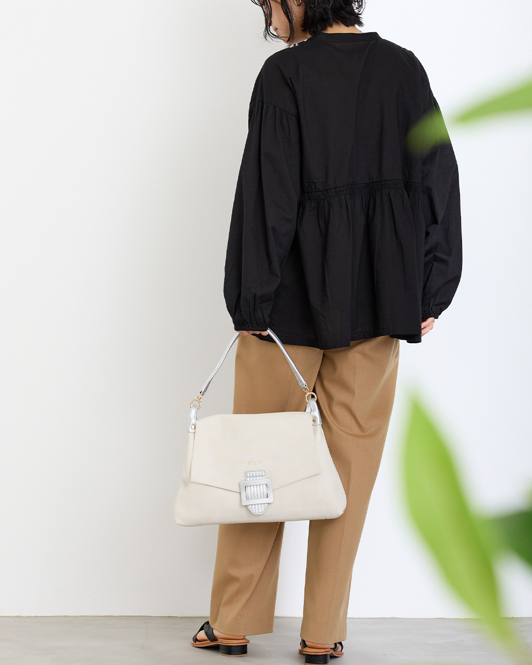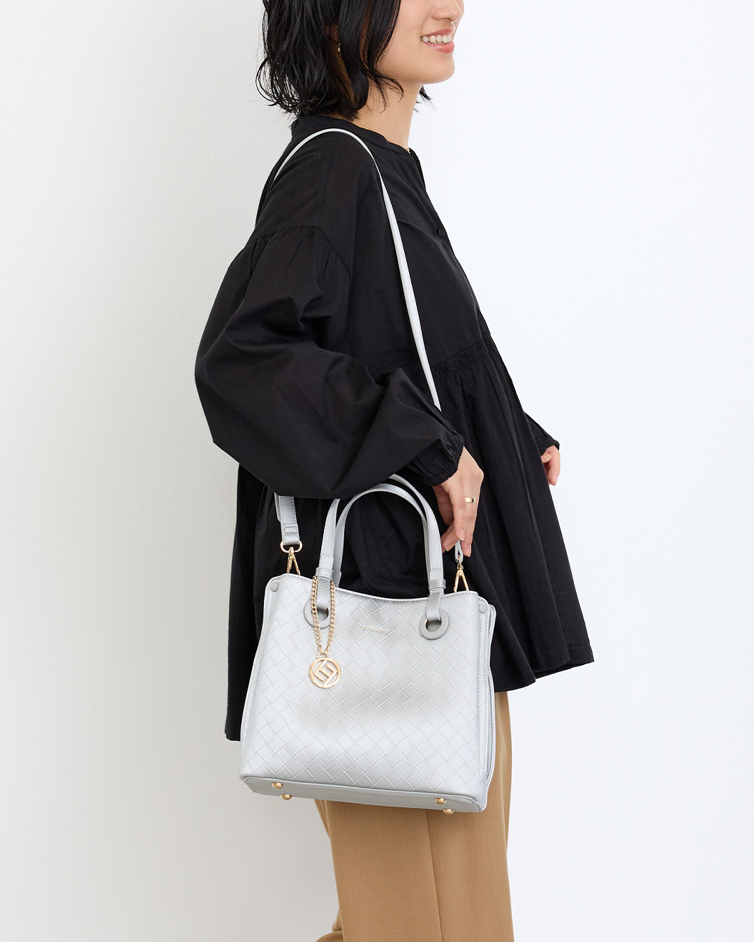 ほのかな艶めきと機能美が調和し、上品な存在感を放つ2WAYハンドバッグ