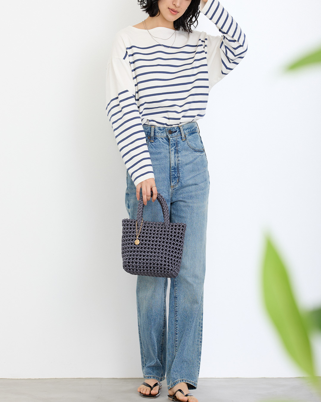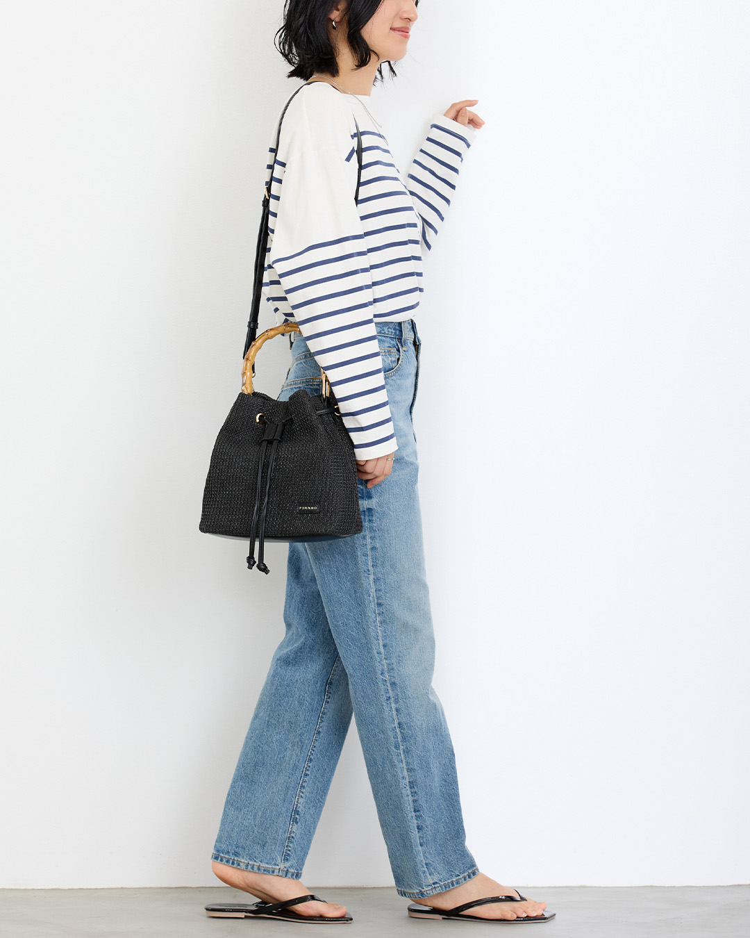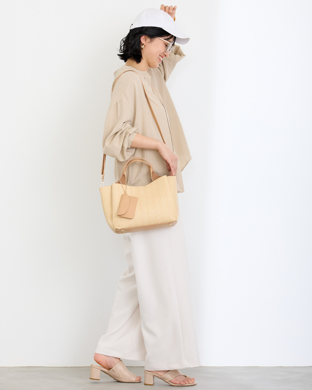 ナチュラルな素材感が、装いに涼やかな抜け感をプラス。