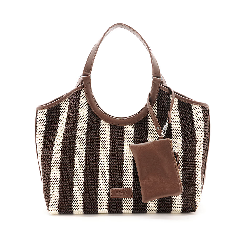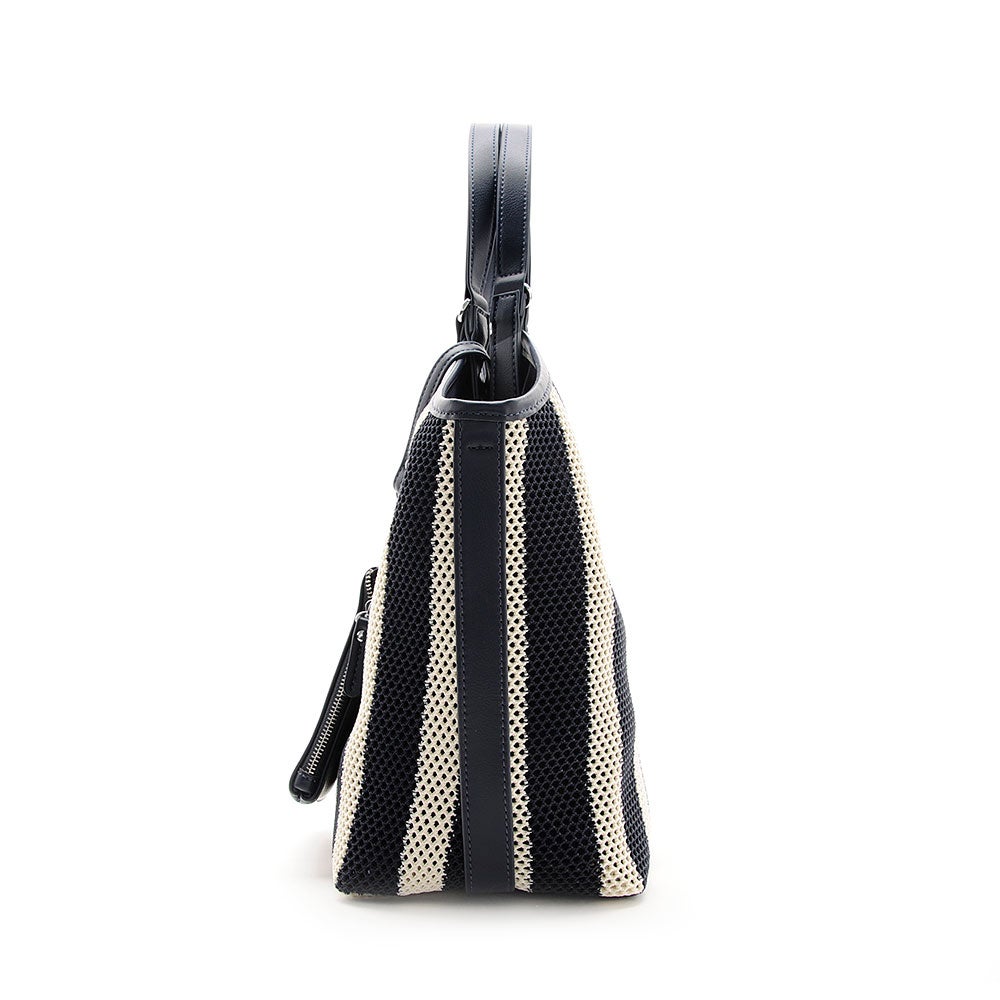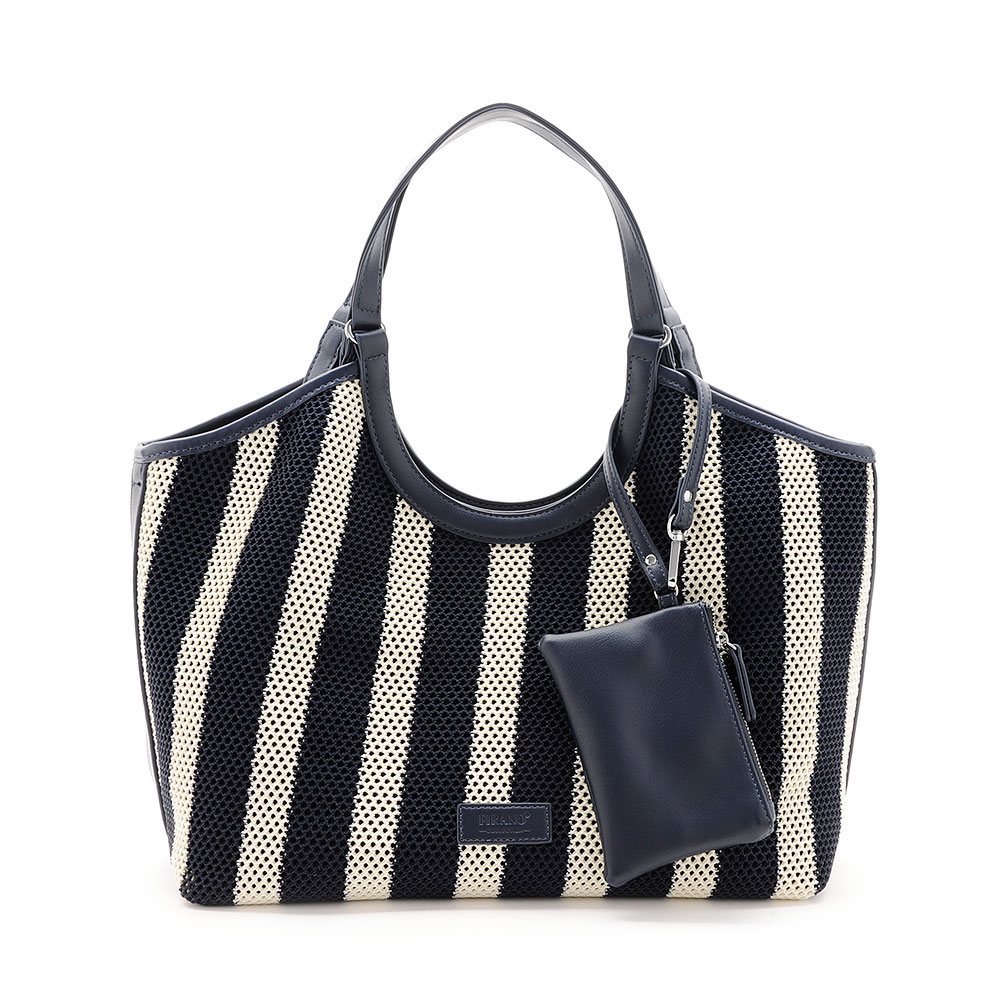 大きめのストライプ柄が目を惹く、軽やかなメッシュ素材のトートバッグ。