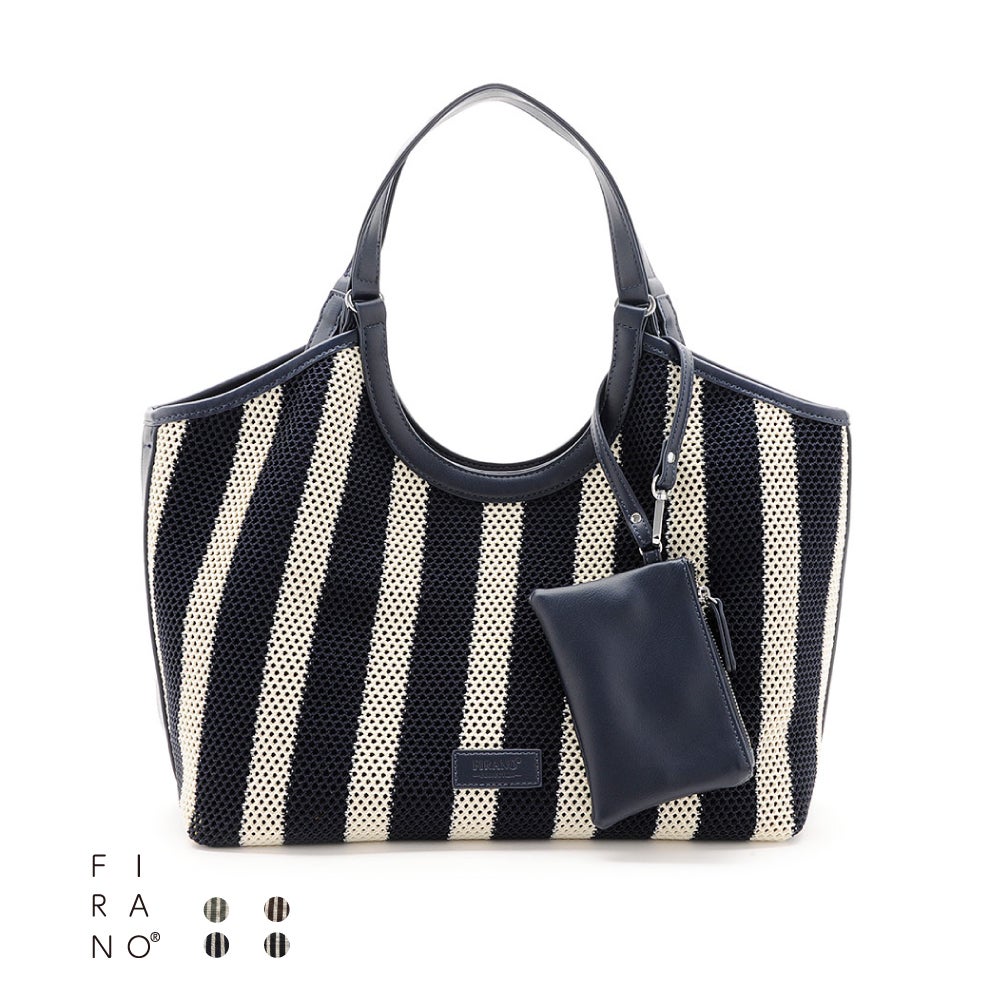 コメント 大きめのストライプ柄が目を惹く、軽やかなメッシュ素材のトートバッグ。