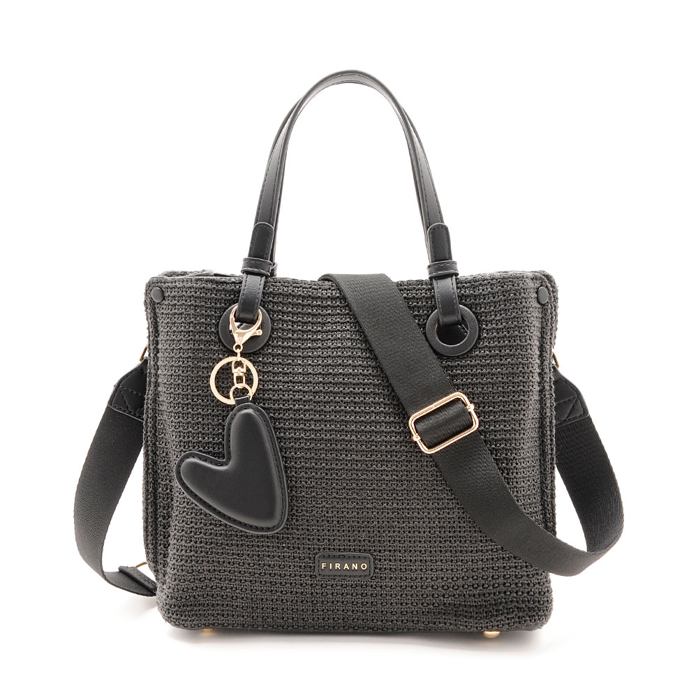 ショルダーベルト付きで、ハンド・ショルダーの2WAY仕様。さらに、取り外し可能なハートチャームがさりげないアクセントとなり、上品な遊び心を添えます。