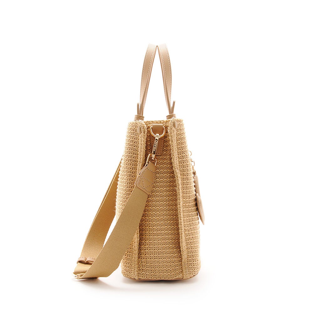 涼やかな編み込み素材が軽やかな印象のハンドバッグ。