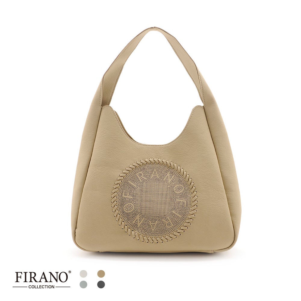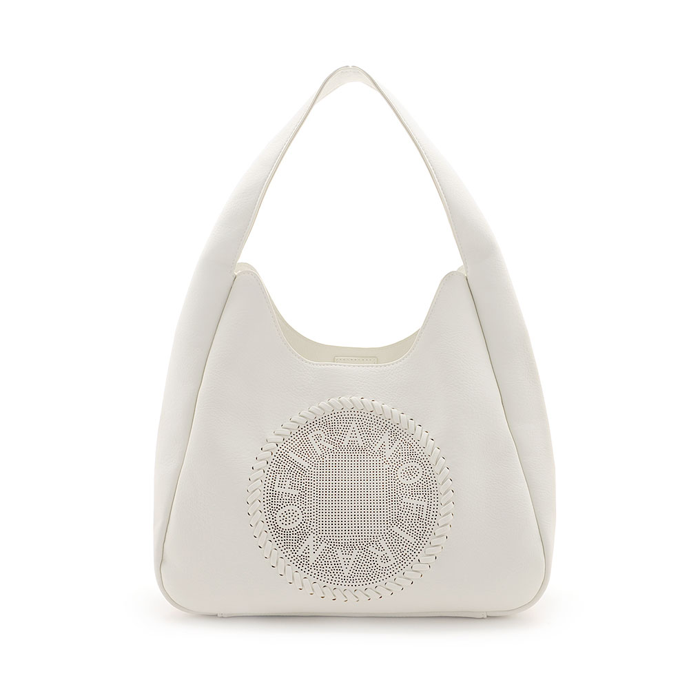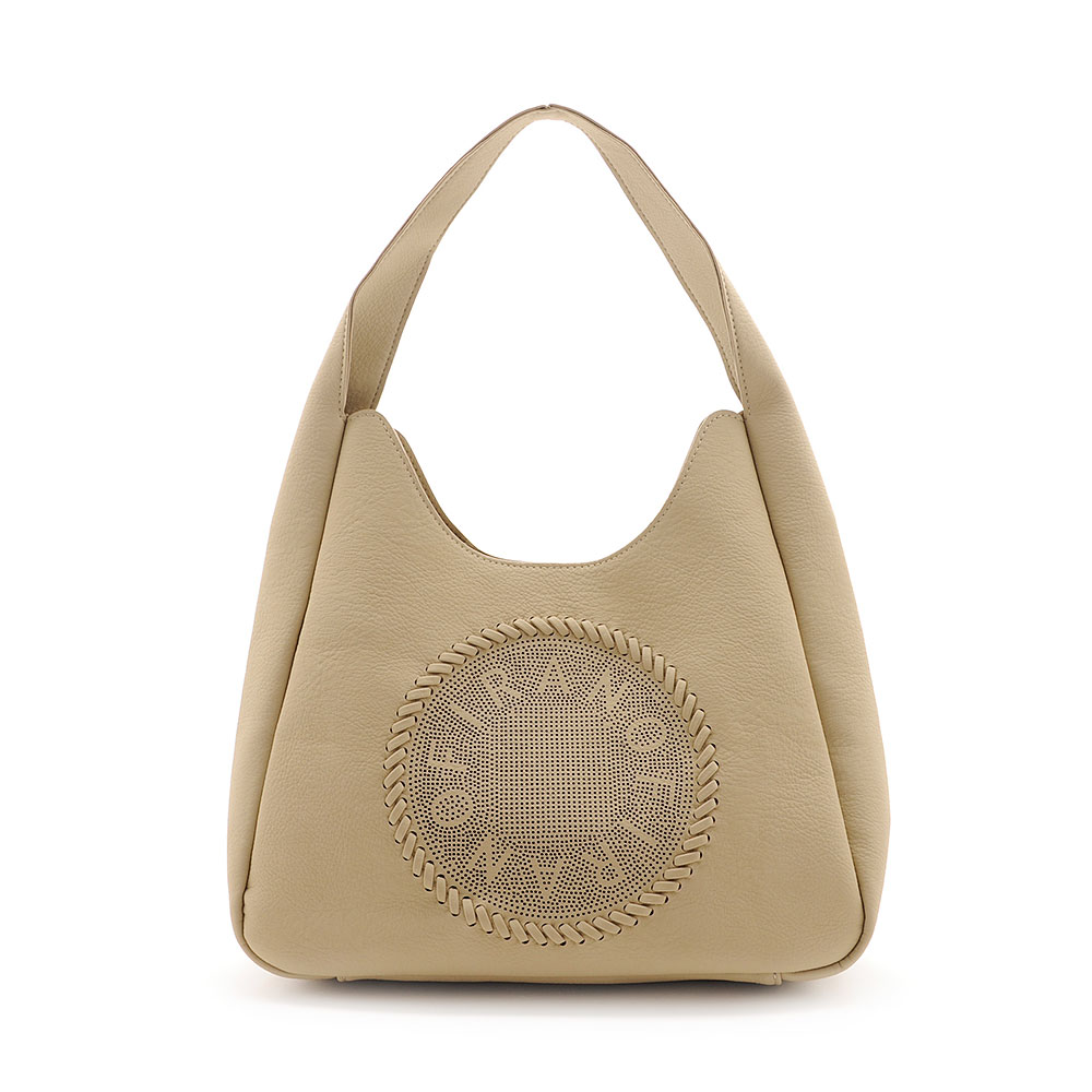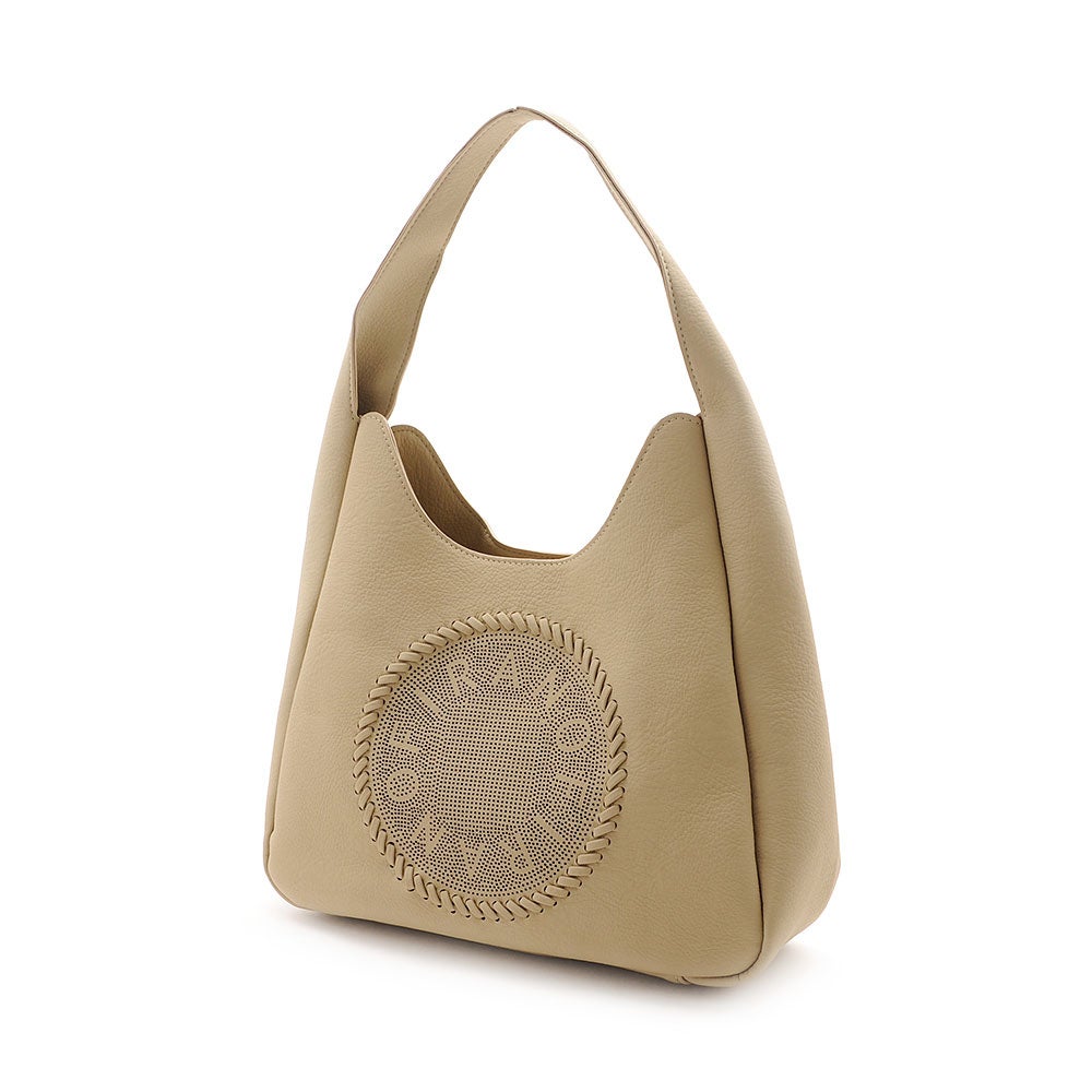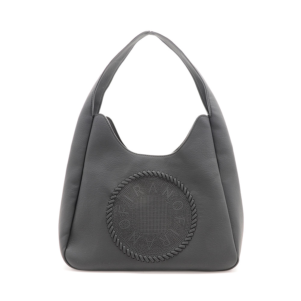 フロントに配したラウンドロゴが、モードな存在感を放つトートバッグ。