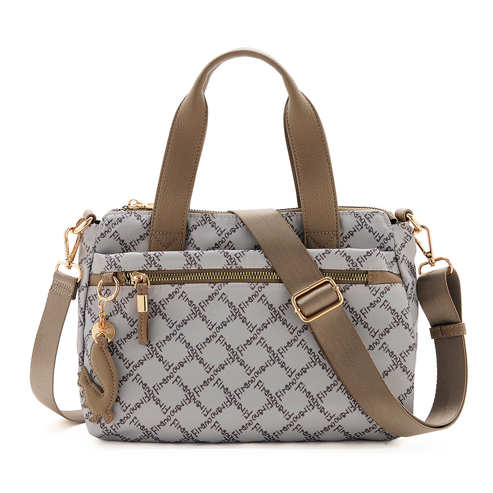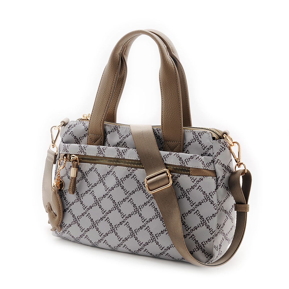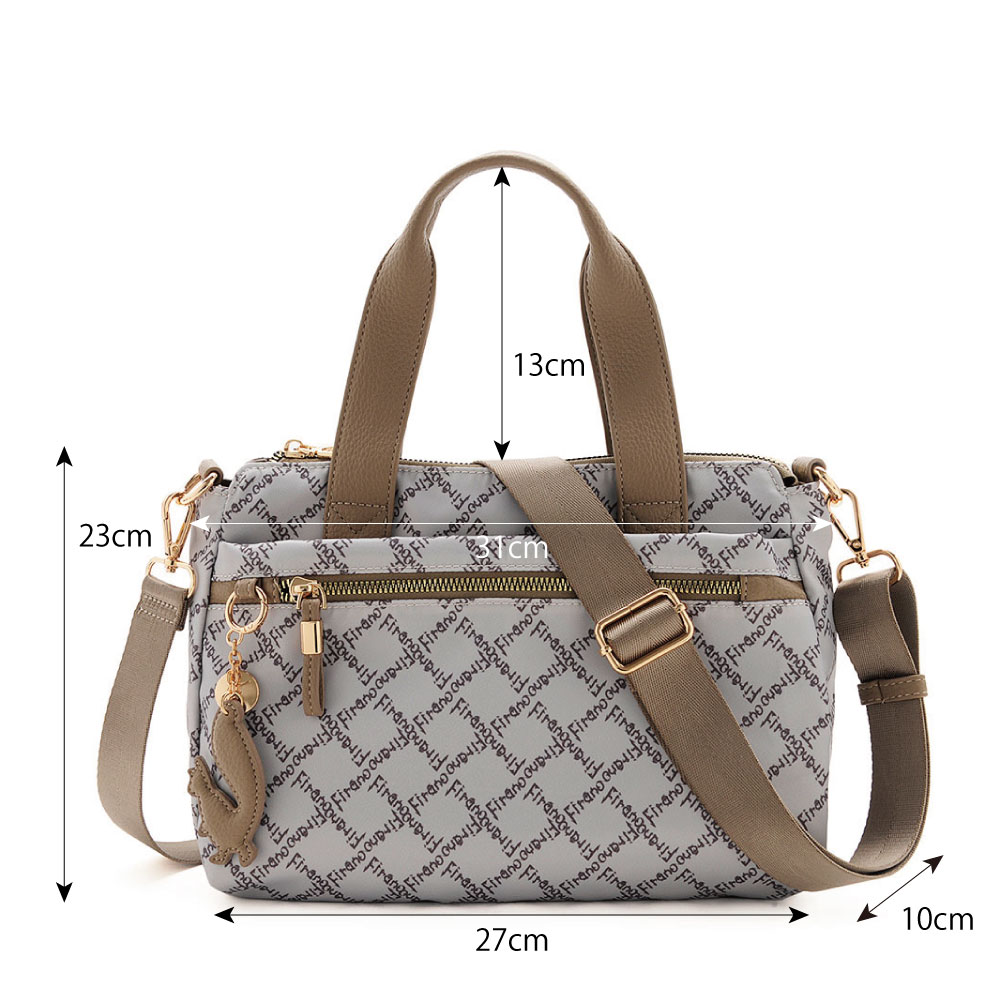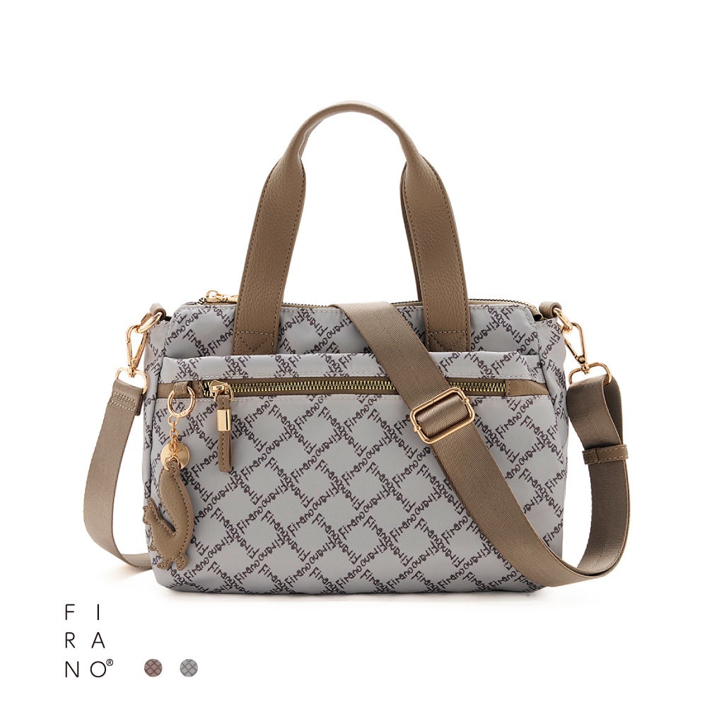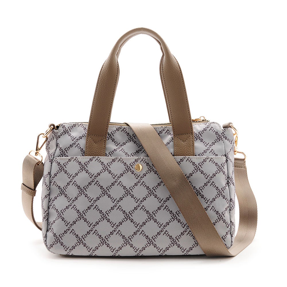 FIRANOのロゴをリズミカルに散りばめた、アイコニックなデザインが目を惹くハンドバッグ。