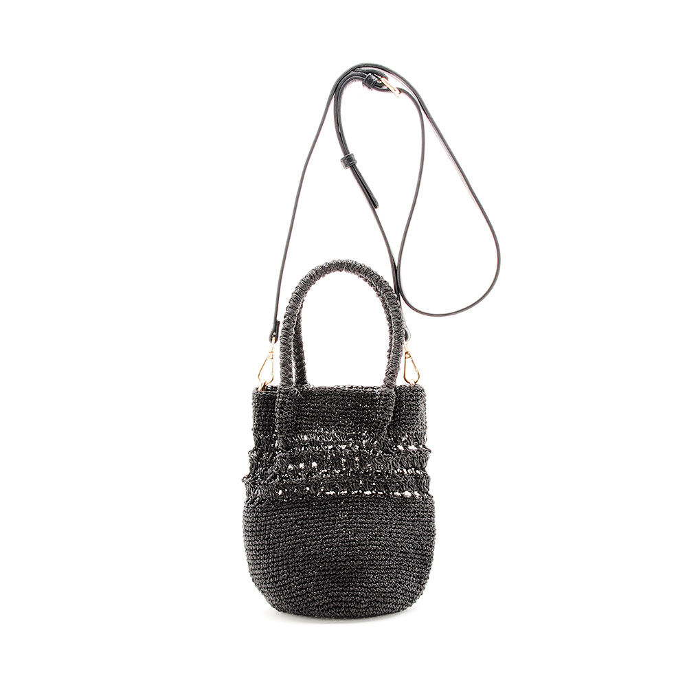 軽やかさときらめきをまとい、夏の装いにさりげないアクセントになるミニハンドバッグです。