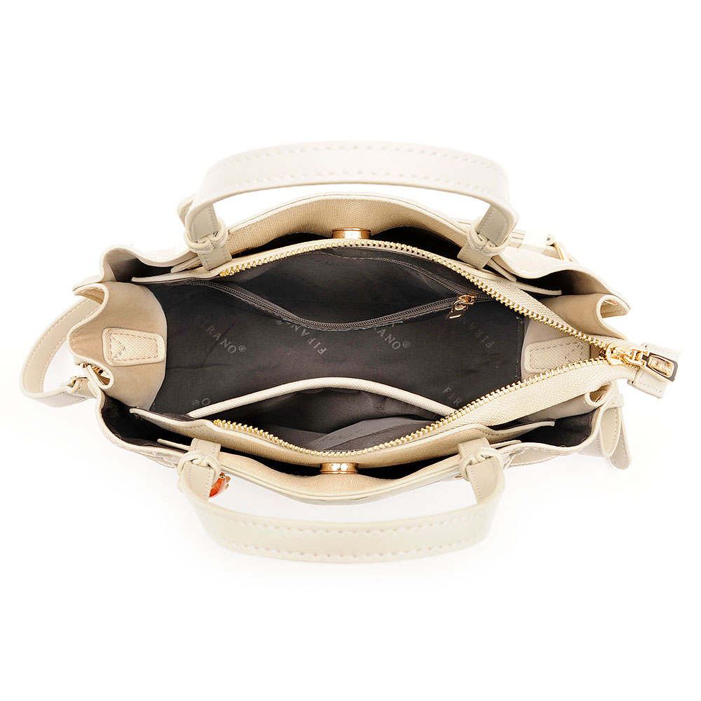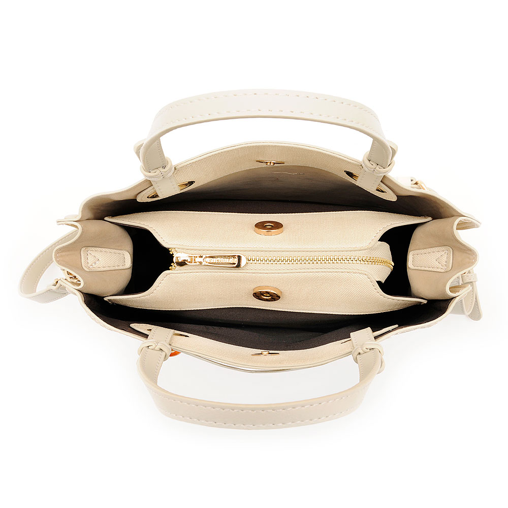 内側には2つのポケットを備え、スマートフォンや小物もすっきり整理しながら持ち歩ける、使い勝手の良いデザインです。