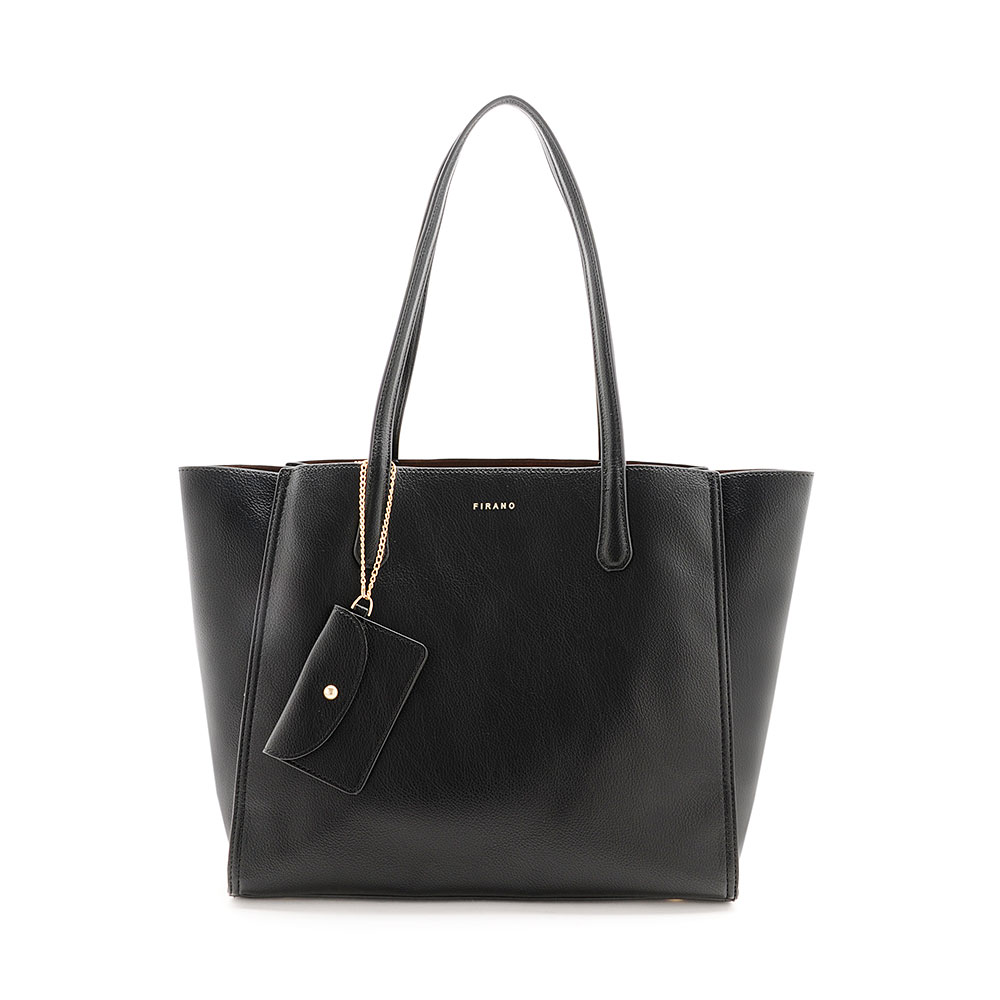 A4やノートPCも入るサイズ感でオフィスシーンで大活躍。コインやICカードなどの小物を入れられるチャーム付きパスケースもセット。シンプルながらも品のあるデザインで綺麗めなコーディネートにぴったり。