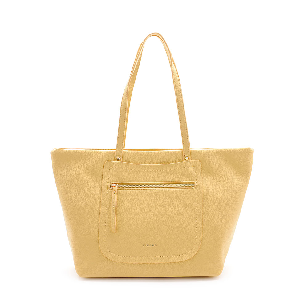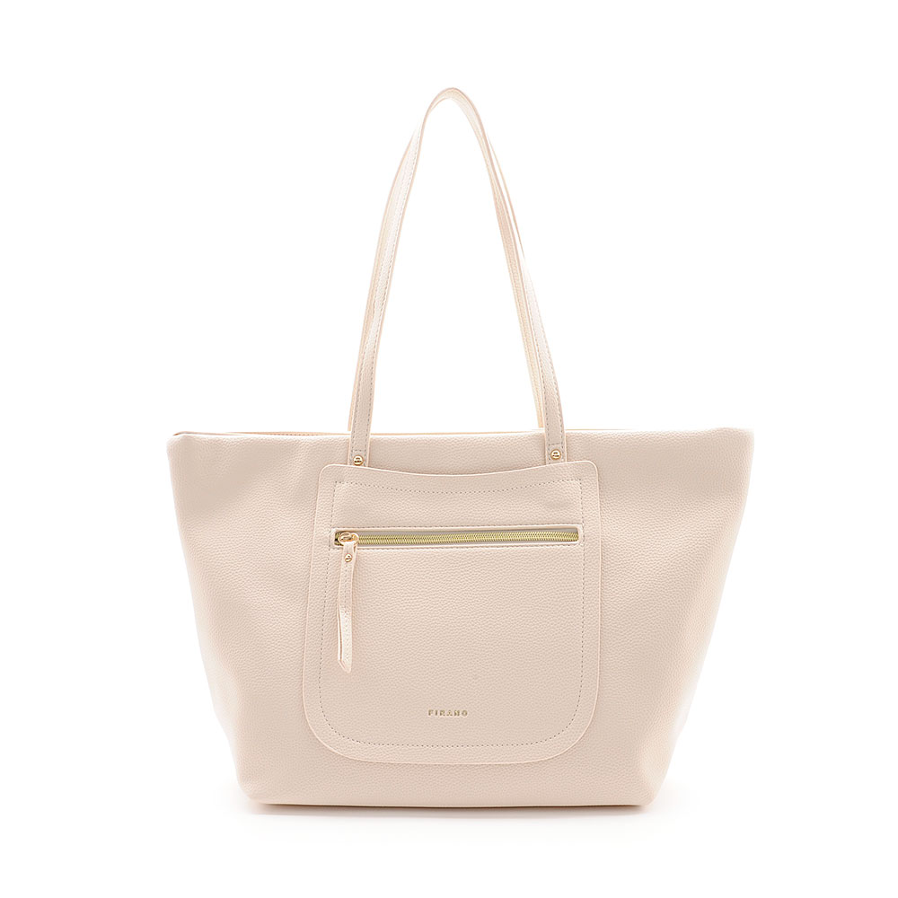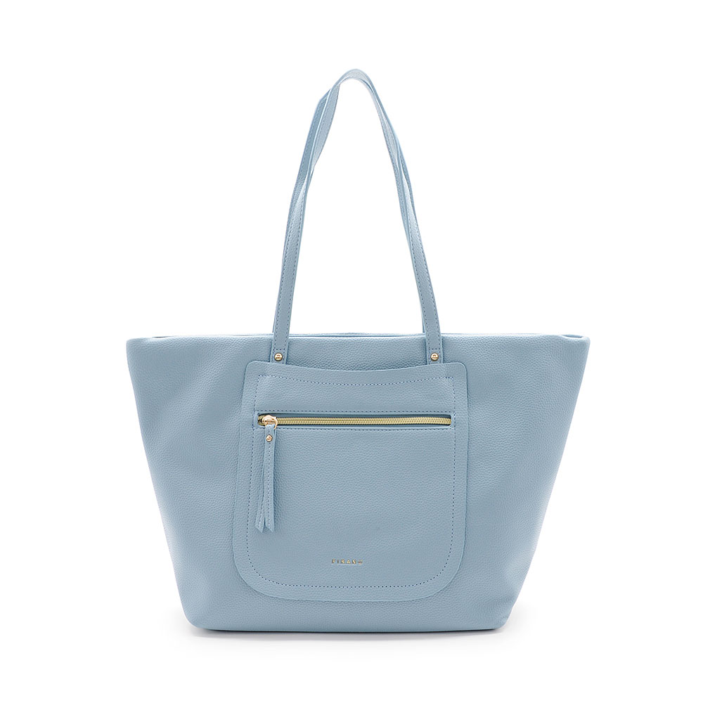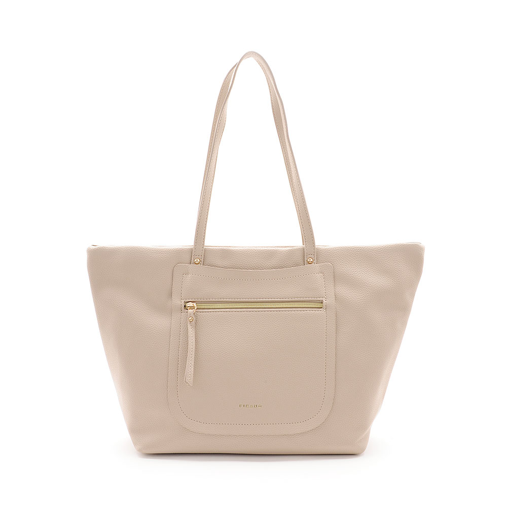 シンプルなデザインにビッグポケットが際立つトートバッグ。