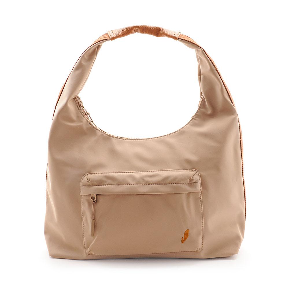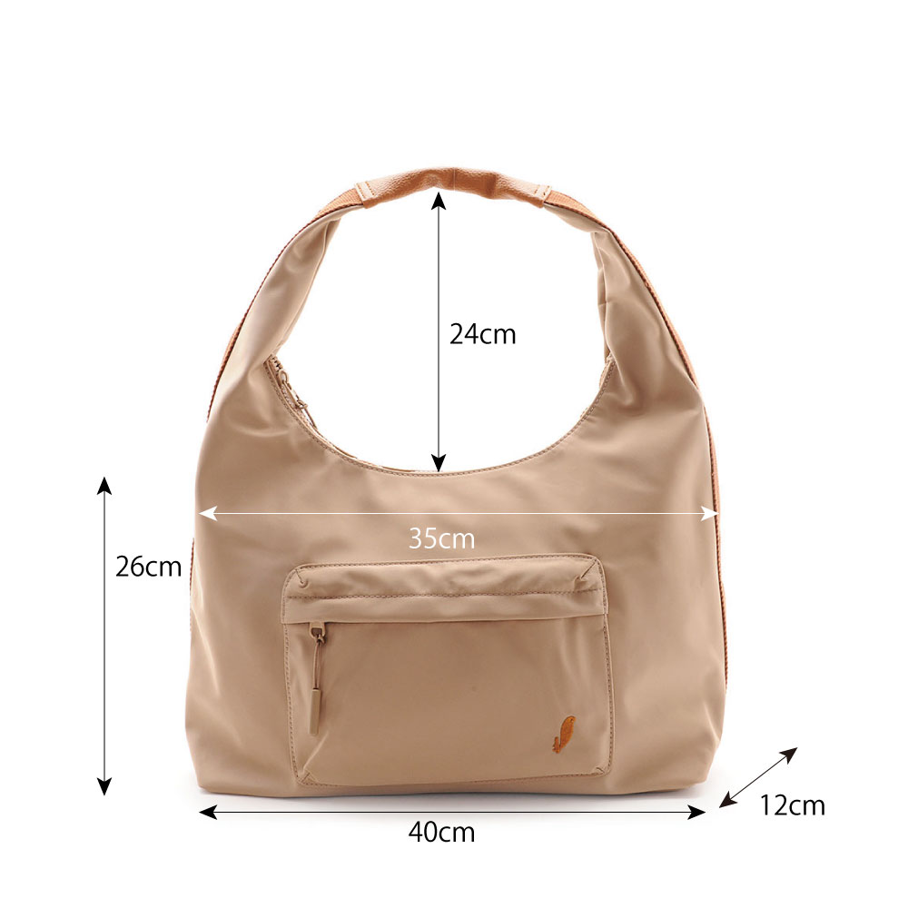 バッグと持ち手が一体になったデザインで、シンプルながら存在感を放ちます。軽やかなナイロン素材にははっ水加工を施しているため、急な雨の日でも安心。