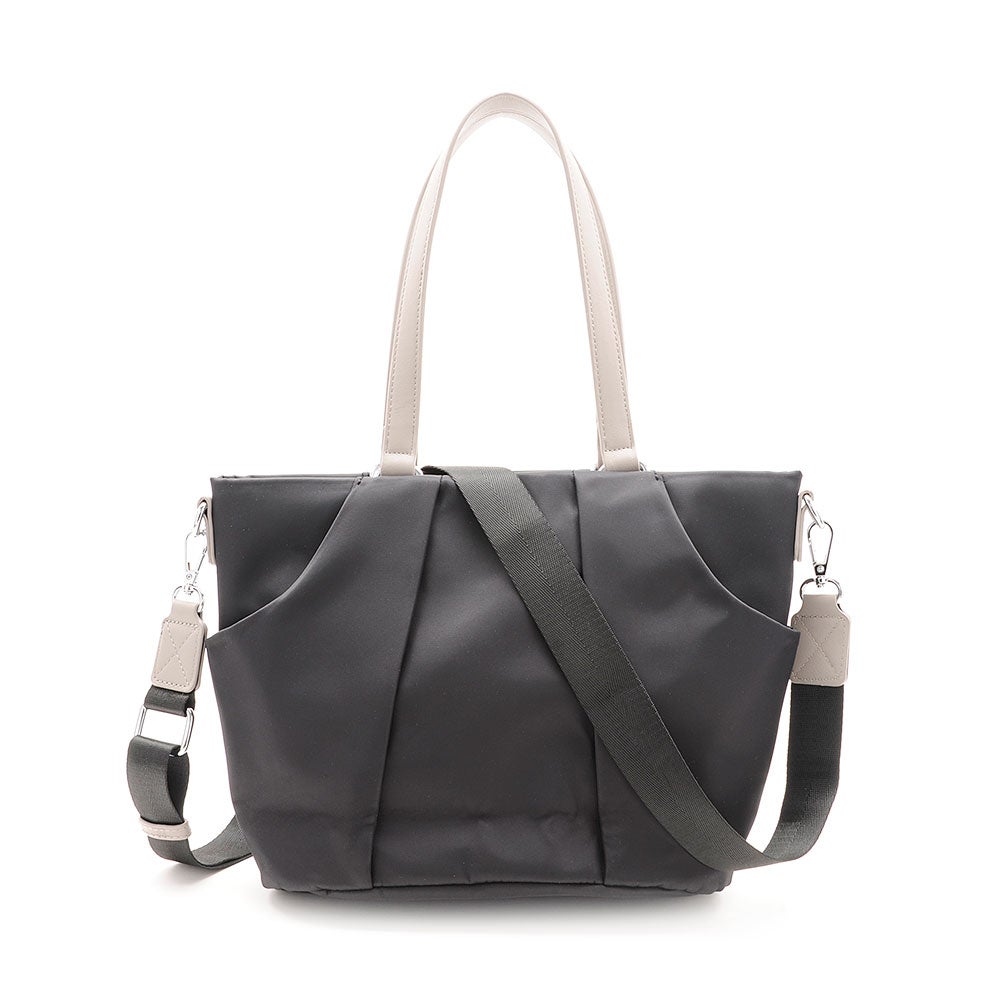 シンプルさの中に洗練を感じる、バイカラーデザインのトートバッグ。