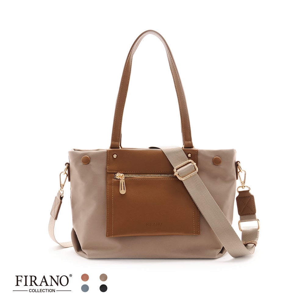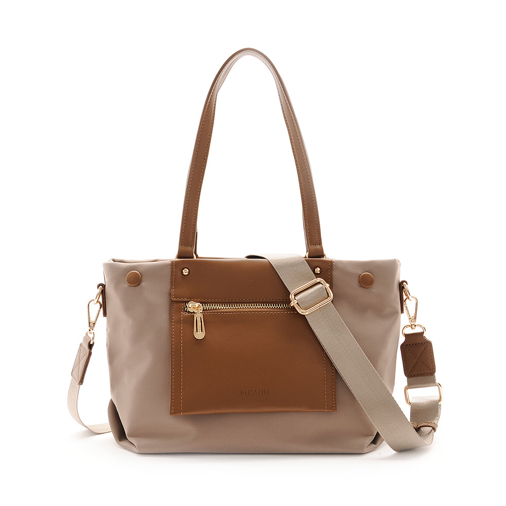 スタイリングに華やかさを添える、バイカラートートバッグ。