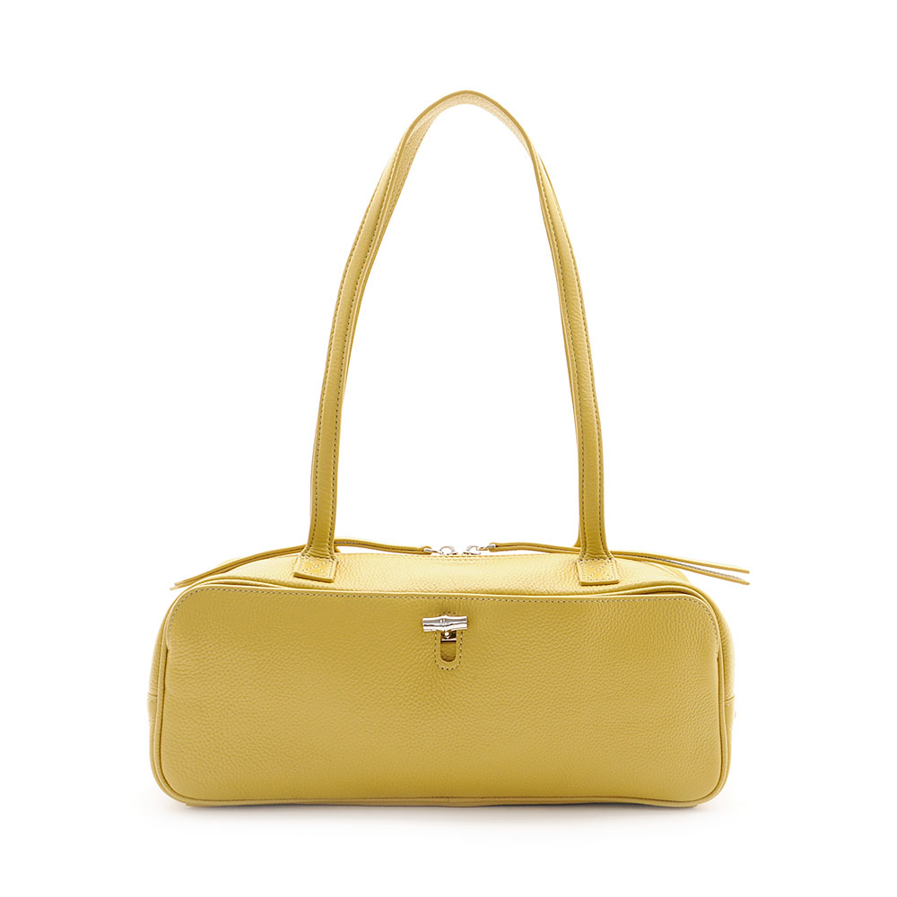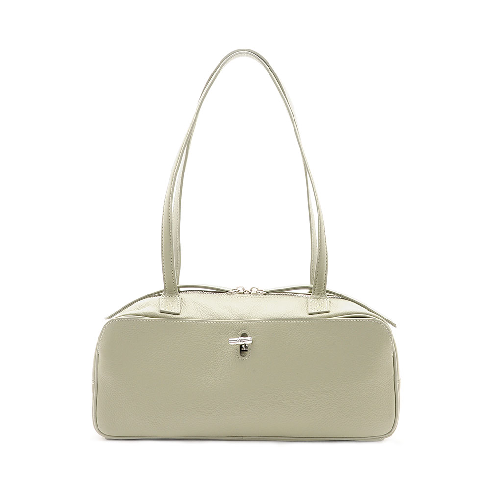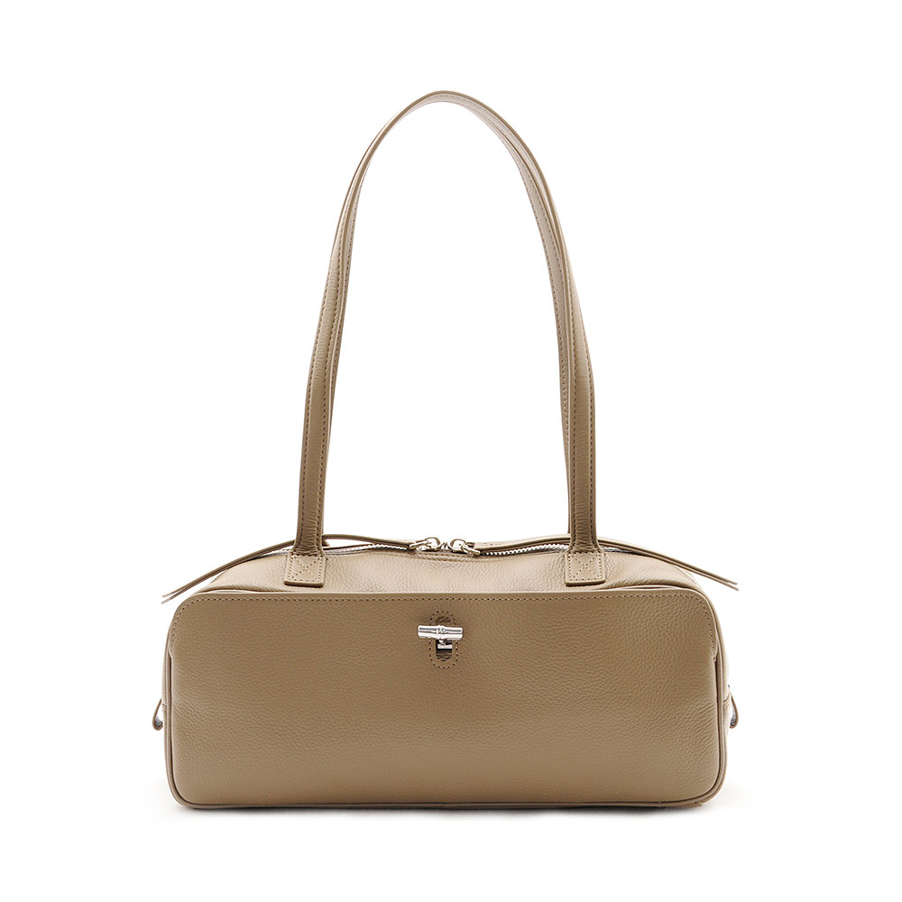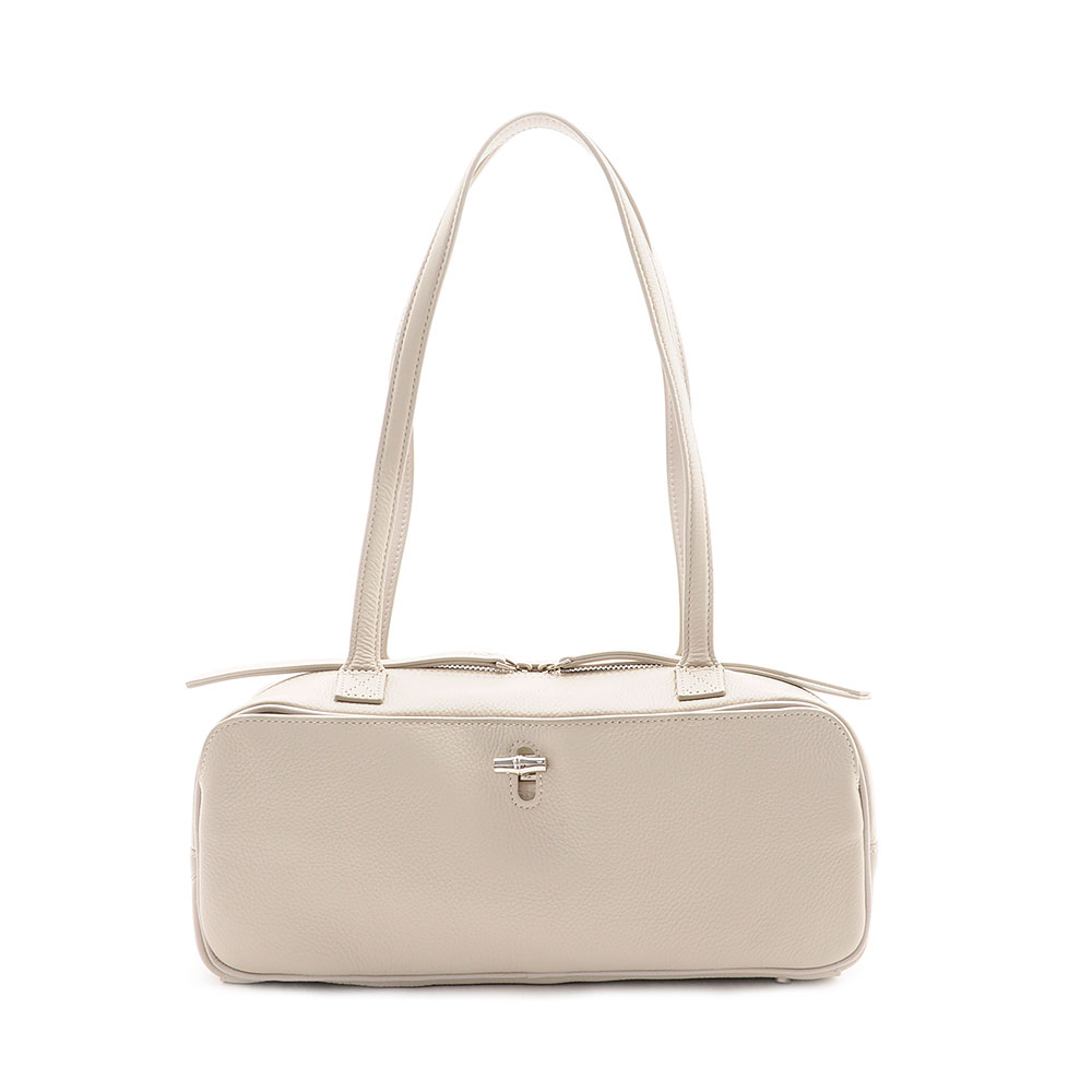 ワイドでスマートなフォルム感がシンプルながらも目を惹くハンドバッグ。