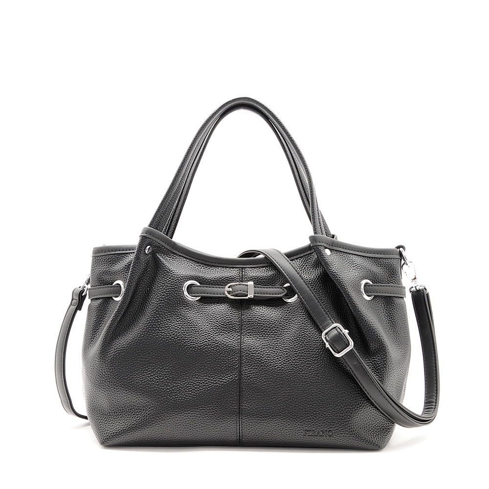 きれいめで上品さを与えるちょうどいいサイズ感のハンドバッグです。