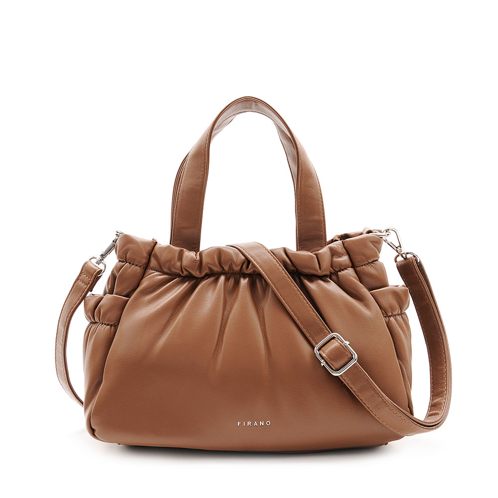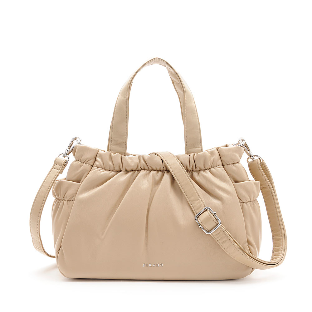 ふんわりパディングが柔らかい印象を生む、丸みを帯びたコンパクトフォルムのハンドバッグ。