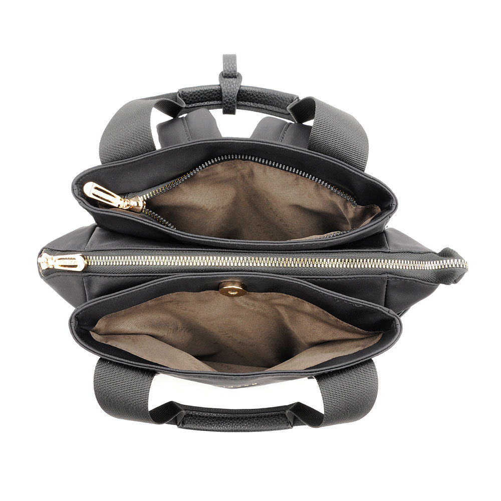 メイン収納はファスナー開閉で貴重品もしっかり収納。内側にはファスナー付きと2つのオープンポケットを装備。バッグの中で荷物をしっかりと整理できます。
