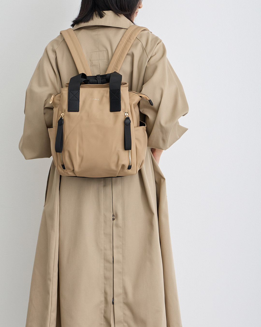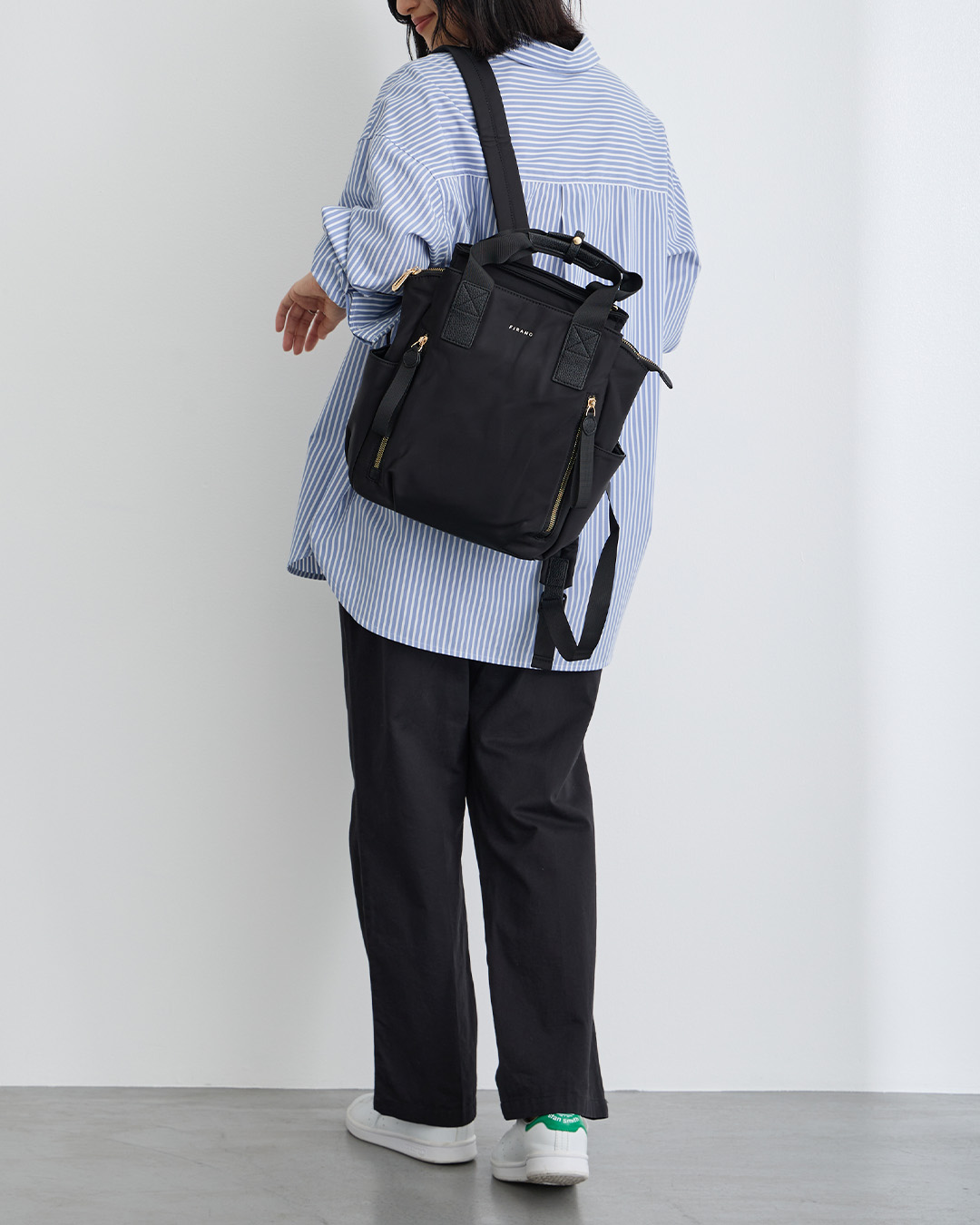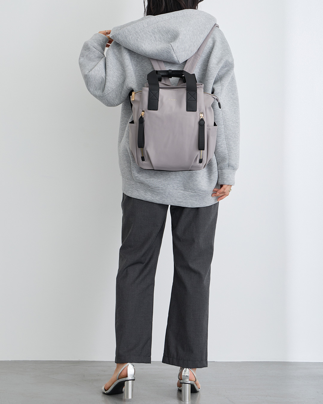 リュックでもハンドバッグスタイルでも様になるシルエット。ハンドルは持ちやすさを失わず、リュックスタイルでも邪魔をしない絶妙なバランスの長さ。