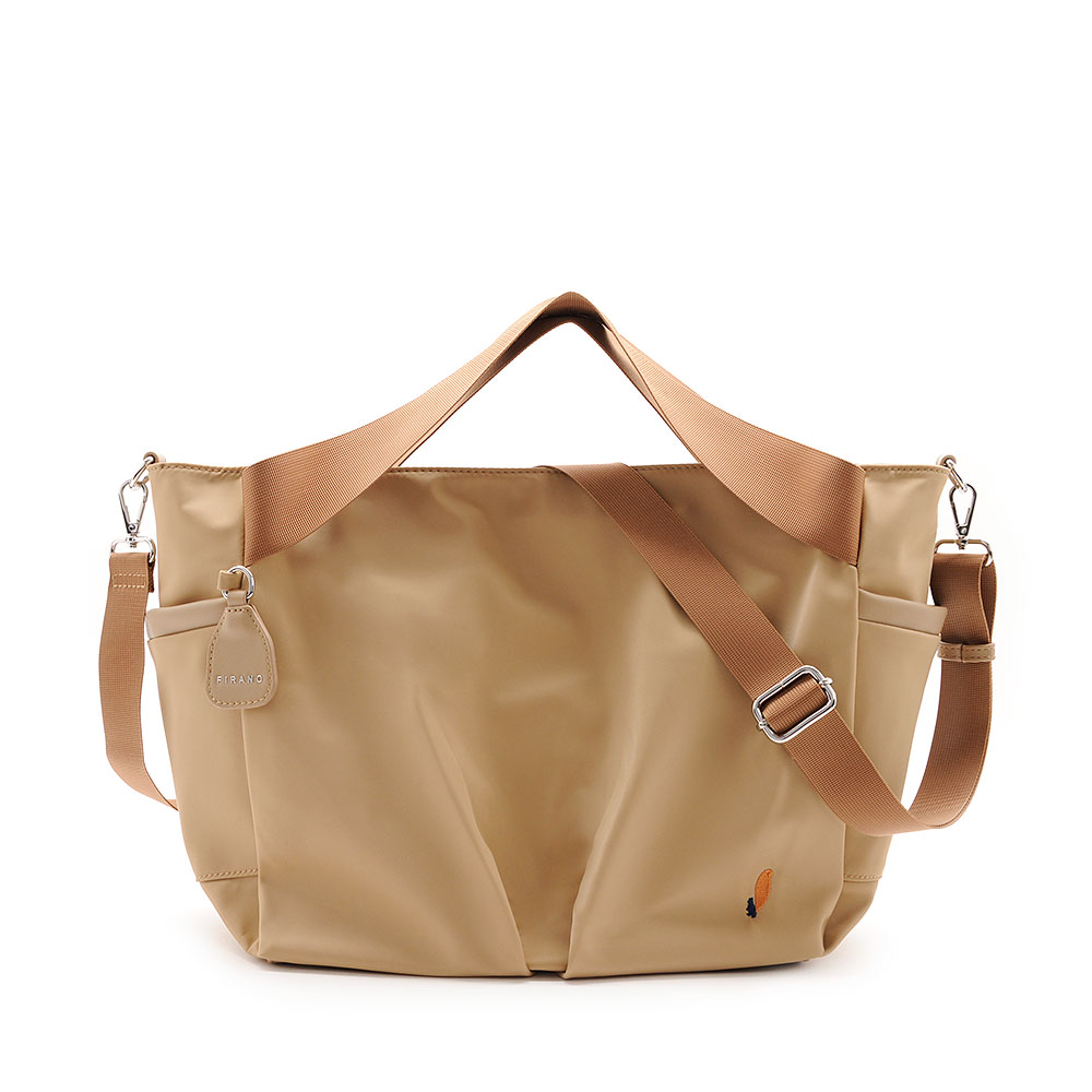 幅広のナイロンベルトが持ちやすく、腕や手にフィットします。手元を空けたい時には、付属のショルダーベルトで斜め掛けにスタイルチェンジもできます。