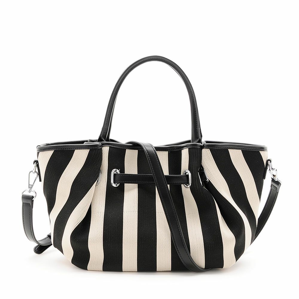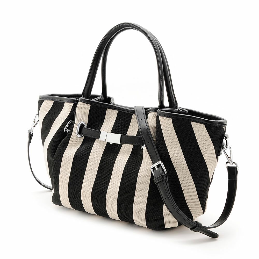 コメント 存在感のあるストライプ柄が目を惹く、印象的なデザインバッグ。