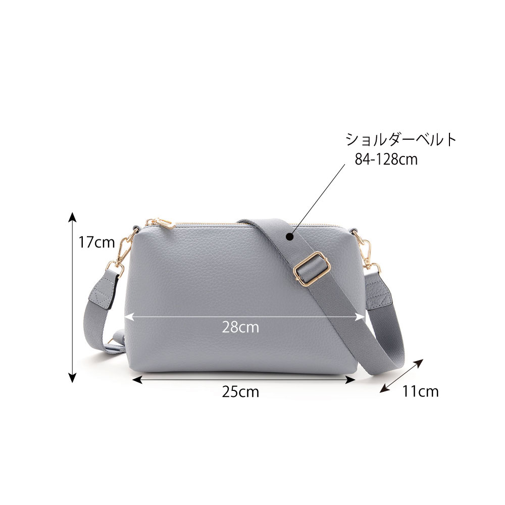 ミニショルダーバッグはスマートフォンや必需品が収まるコンパクトサイズ。幅広のショルダーベルトを合わせることで、さりげなくアクセントを効かせました。
