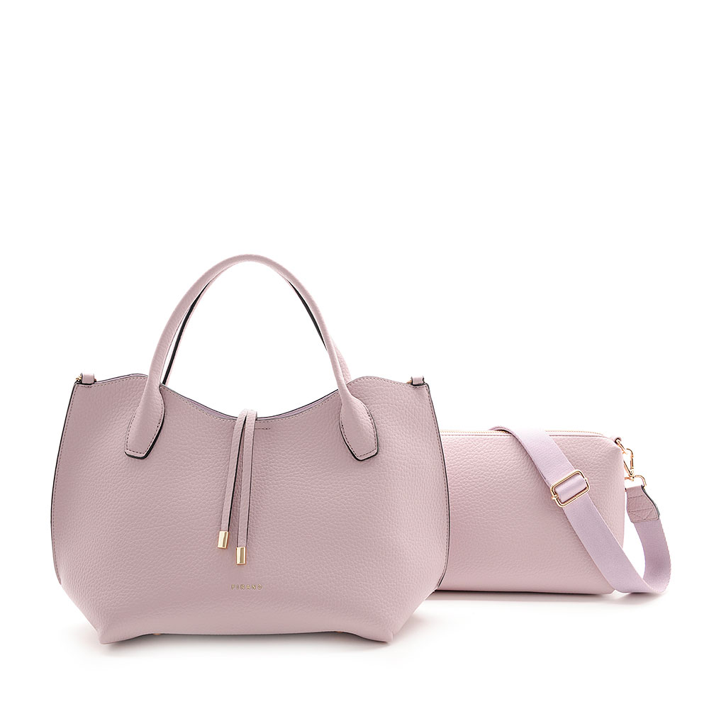 フォルムの美しさが際立つハンドバッグとミニショルダーバッグのセット。