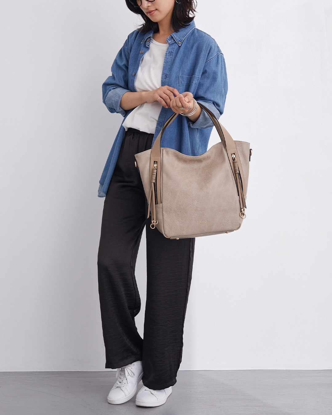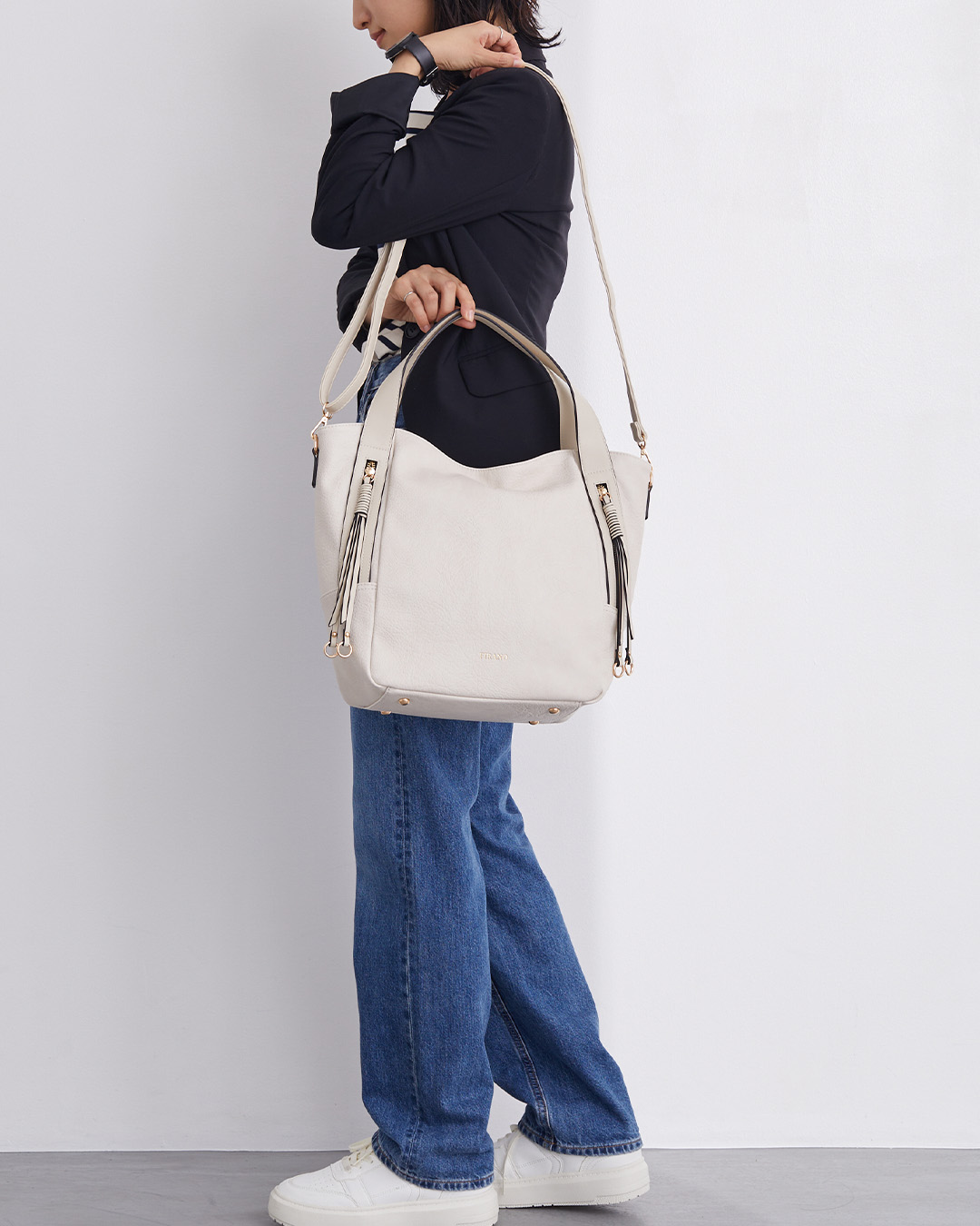 オン・オフ問わずどんなシーンにもマッチする、実用性とデザイン性を兼ね備えたトートバッグです。