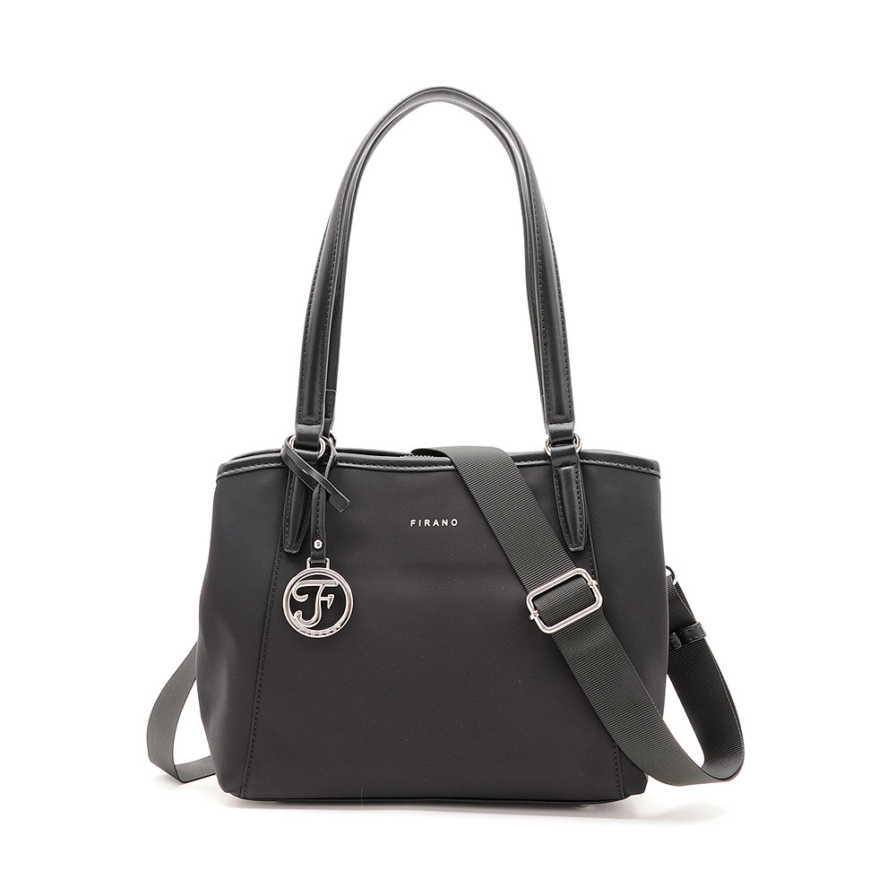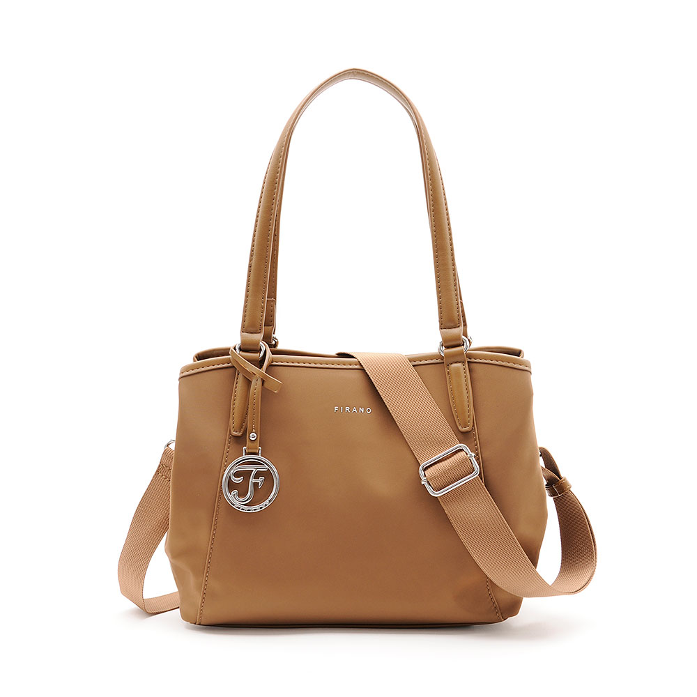 取り外し可能な幅広ショルダーベルトが付属しており、シーンに合わせてハンドバッグにもショルダーにもアレンジできます。存在感のあるロゴチャームがアクセントとなり、シンプルなフォルムにモードなエッセンスをプラス。
