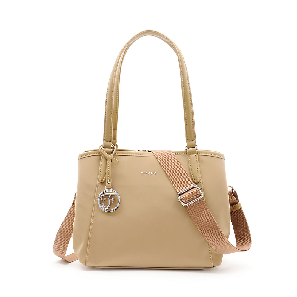 滑らかで上品な光沢を放つナイロン素材を使用したハンドバッグ。