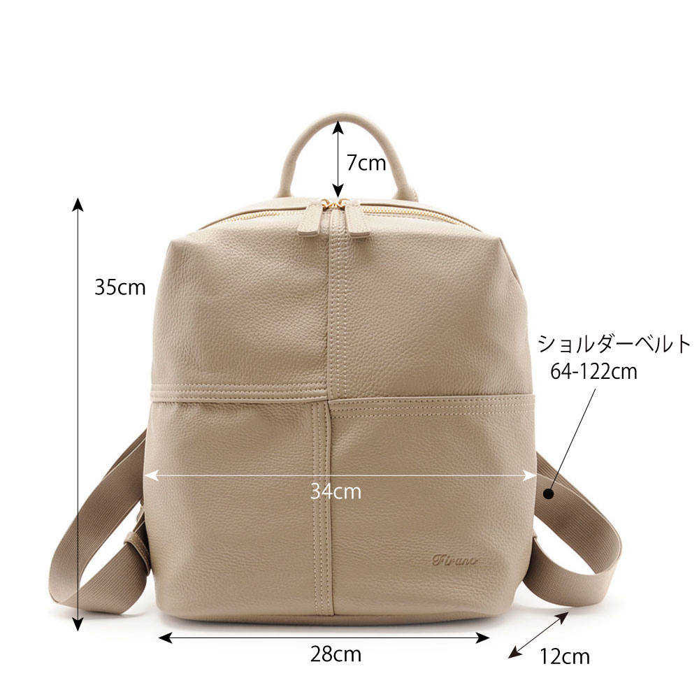 A4サイズがしっかり収まる収納力で、書類やタブレットもすっきり収納可能。幅広のショルダーベルトは肩にやさしくフィットし、安定感のある背負い心地です。
