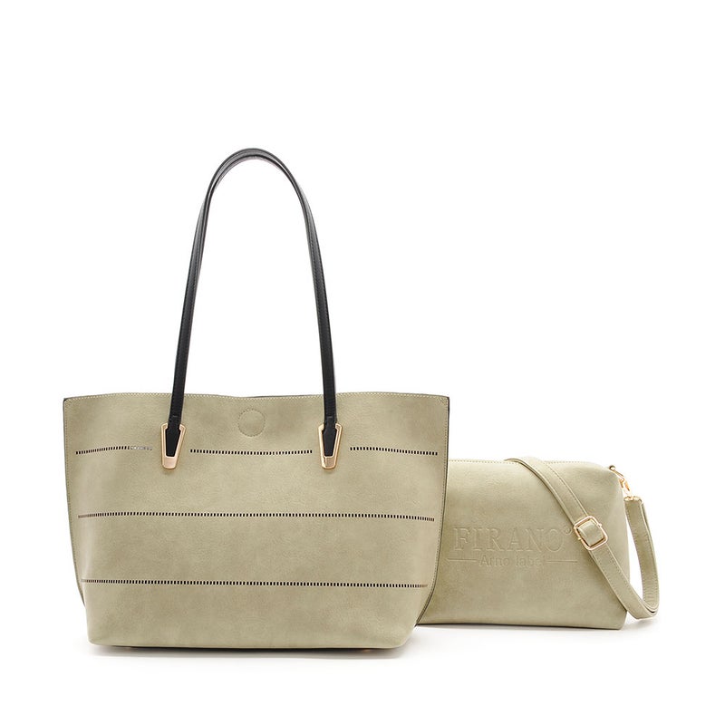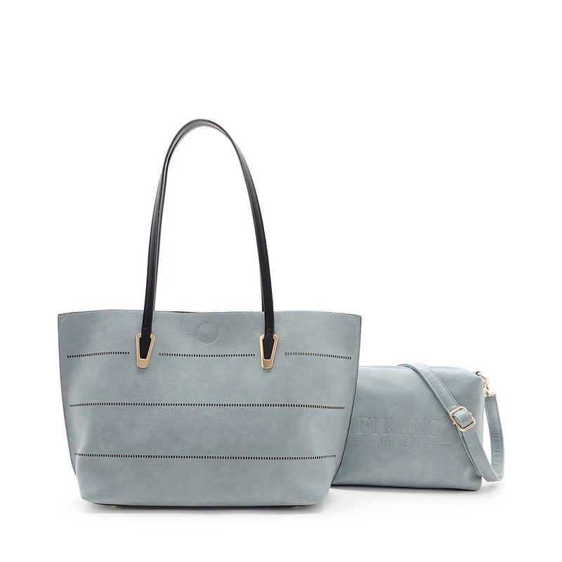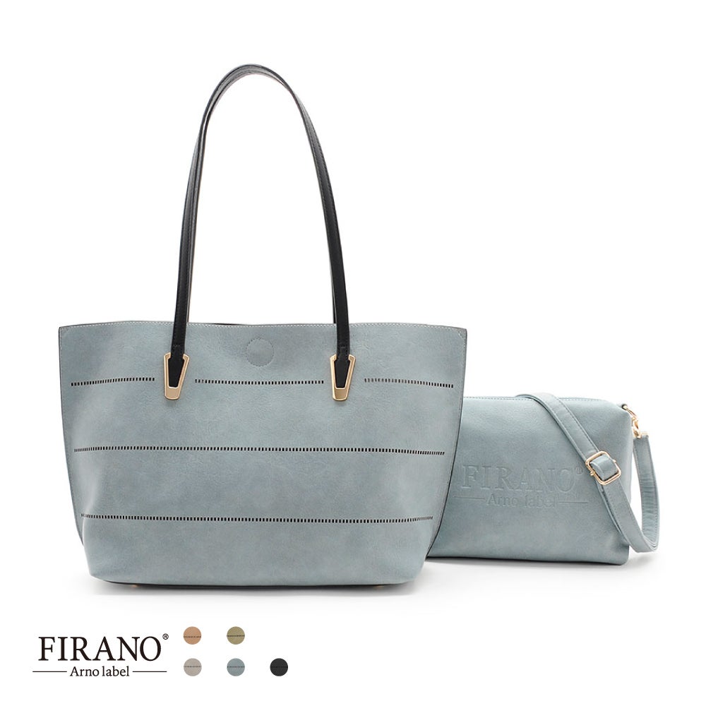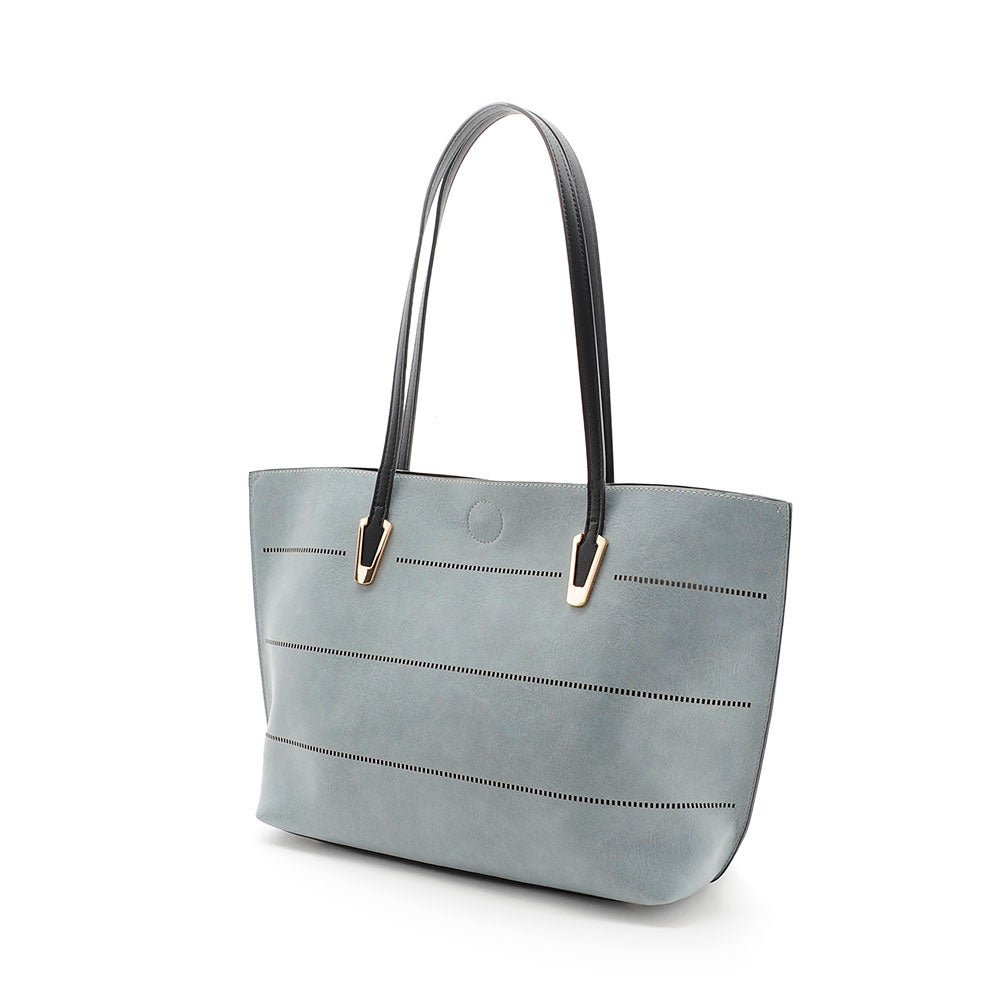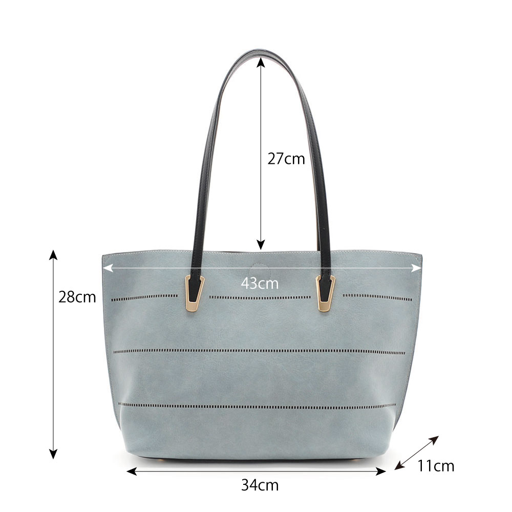 パンチングのボーダーデザインが、軽やかで洗練された印象を与えるトートバッグ&ショルダーバッグセット。