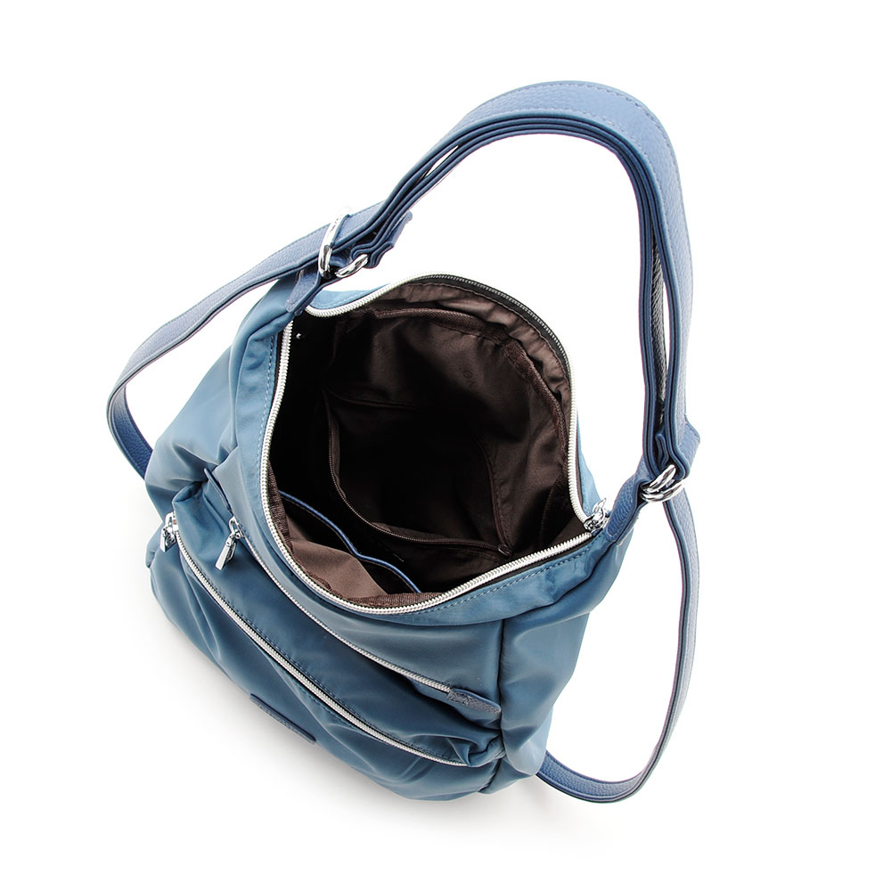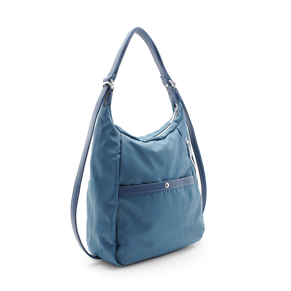 ショルダーベルトには合成皮革を使用し、カジュアルさの中にエレガントさもあわせ持つデザインです。
