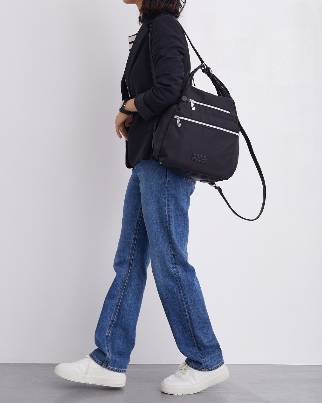 そのまま持ってショルダーバッグに、ベルトを横に絞るとリュックスタイルに。