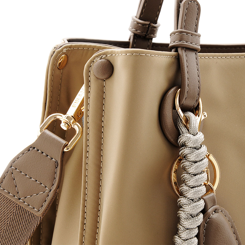 ボディは、はっ水加工のナイロン素材。やわらかな風合いながらしっかりと雨や水滴を弾きます。