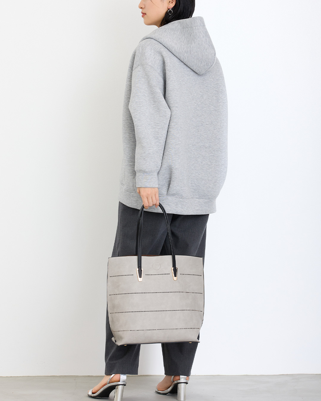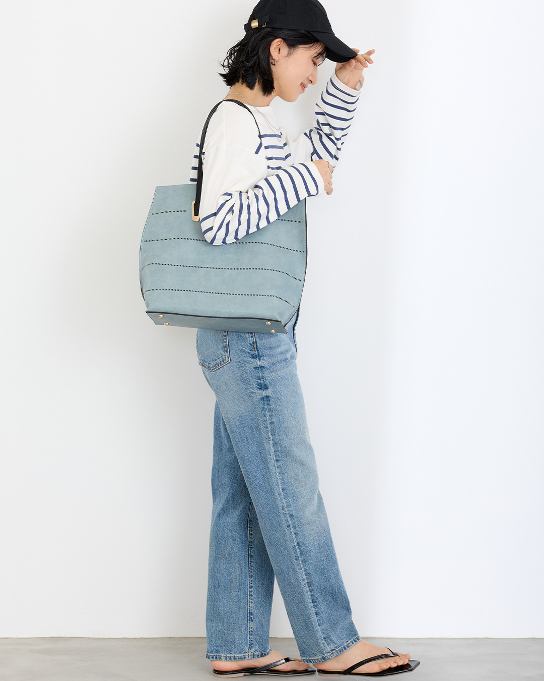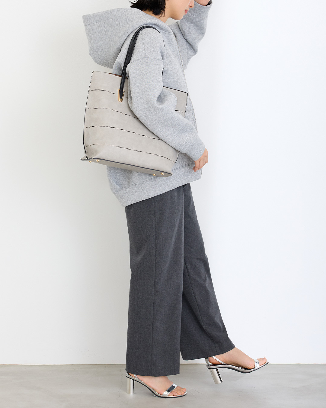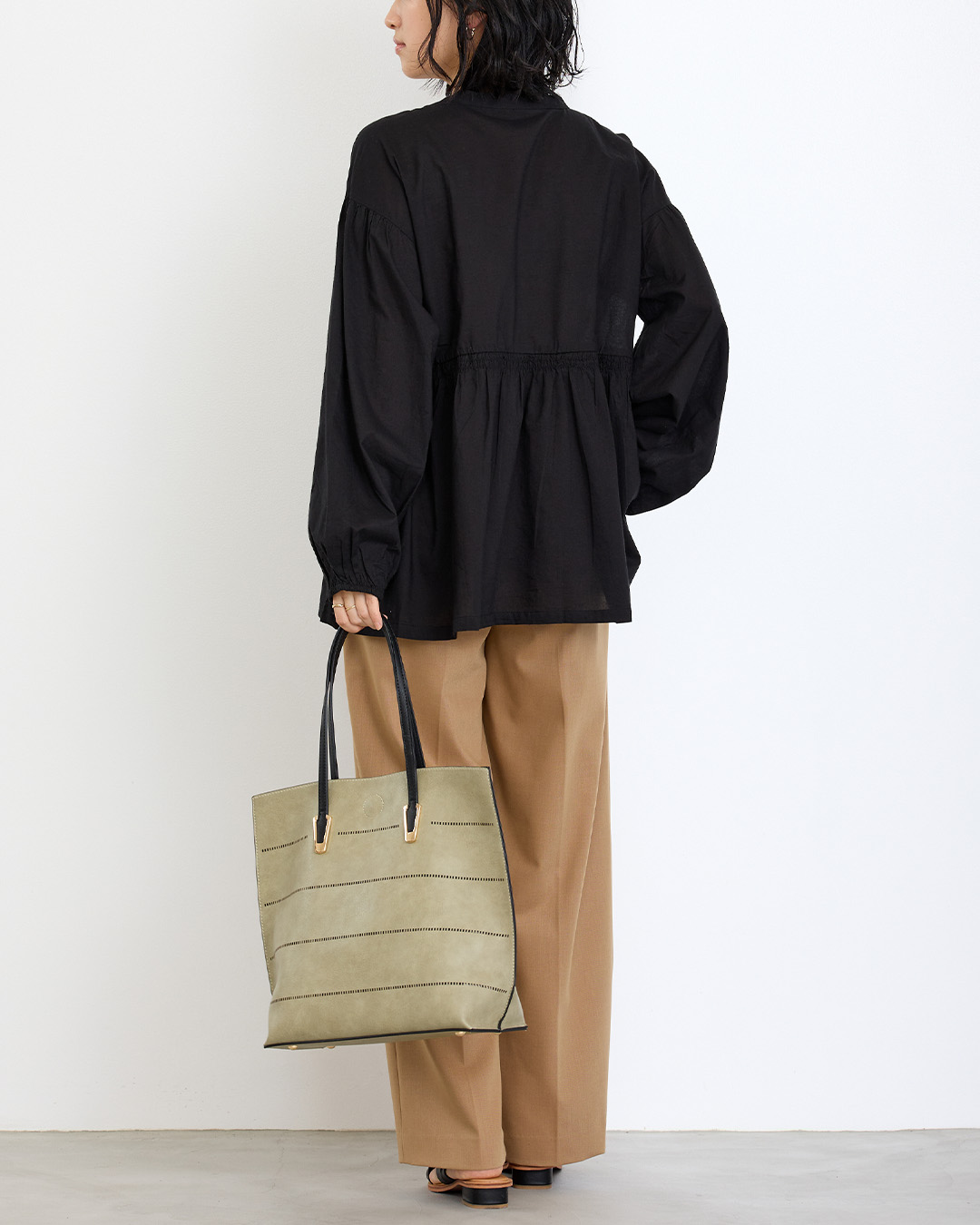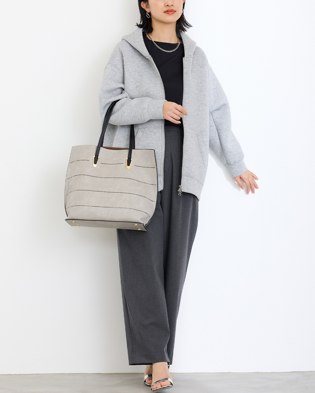 たっぷり大容量サイズで荷物の多いビジネスやトラベルシーンでも大活躍。上品なシルエットながらも、底マチや奥行きもしっかりとあるため、荷物の収納もしやすいです。